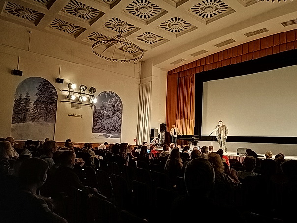 Когда заходишь в зал, прямо перед собой видишь расположенный в центре над сценой большой портрет Петра Ильича, человека с добрыми глазами. Он как бы парит над исполнителями, покровительствуя им. Во время концерта мне казалось, что он с одобрением смотрит на меня и на других зрителей в зале, пришедших послушать прекрасную музыку.